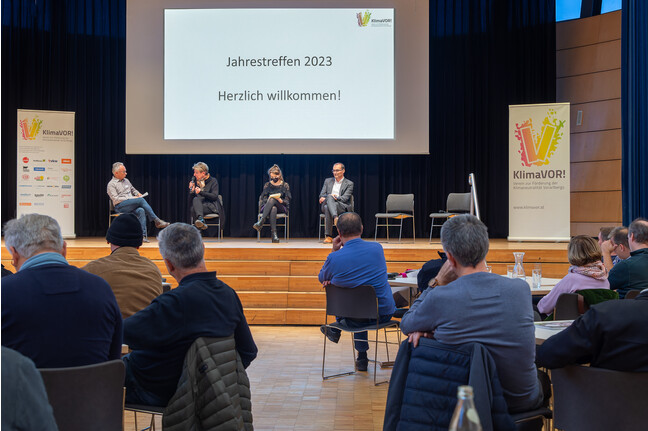 Zeit zum Netzwerken gab es ausreichend in der einstündigen Pause. Bei der abschließenden Fish Bowl diskutierte Christof Drexel mit Jutta Waltl (Psychotherapeutin), Johannes Hämmerle (Vorstandsdirektor Sparkasse Bregenz) und Marina Hagen-Canaval (Klimaschutzaktivistin) über die zentrale Rolle der inneren Haltung. „Wir alle sind Vorbilder und beeinflussen unser Umfeld. Je mehr Menschen mitmachen, desto größer die Wirkung“, erklärte Jutta Waltl. „Ein bisschen Klimaschutz reicht nicht. Wir müssen jetzt radikal umdenken und aufrütteln. Dafür leisten wir zivilen Widerstand“, sagte Marina Hagen-Canaval. Johannes Hämmerle verwies auf die Bedeutung demokratischer Prozesse und warnte vor einem Stimmungswechsel in Europa: „Ohne Mehrheit wird es keine Transformation geben. Dazu braucht es glaubwürdige politische Führungskräfte.“