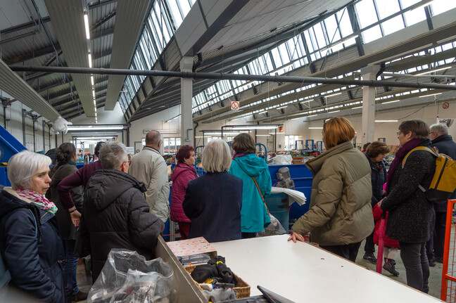 - 50 sehr engagierte Mitarbeiter:innen sortieren hier in aufwändiger Handarbeit,