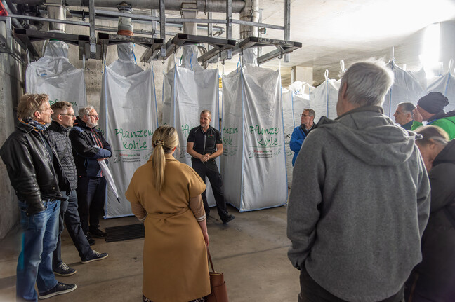 - In seinem Holzkraftwerk wird die Biokohle in einem speziellen Verfahren ausgeschieden – ein Teil des in der Biomasse gebundenen Kohlenstoffs bleibt damit als Kohlenstoff erhalten und wird nicht in Form von CO2 in die Atmosphäre geblasen.